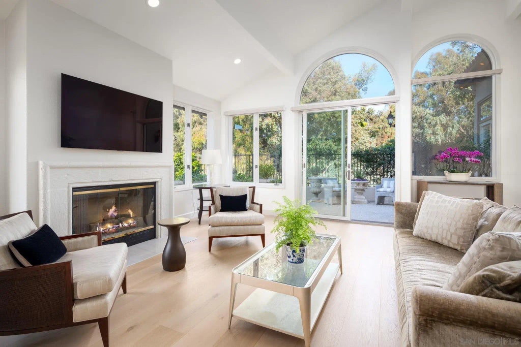 Resting at the end of a quiet cul-de-sac in the highly desirable gated community of Del Rayo Downs in Rancho Santa Fe, this home has undergone a complete transformation. Every inch of the home has been renovated and upgraded with the highest level of finish, style, and sophistication. As you enter the exterior courtyard you'll be greeted by lush landscaping which exudes a sense of peace and tranquility. This single-level beauty features soaring ceilings, ensuite baths in every bedroom, wide plank white oak floors, top-of-the-line appliances, and an abundance of natural light throughout. The oversized side yard features a multitude of fruit trees, a soothing fountain, and a relaxing private setting. This gem will not last!