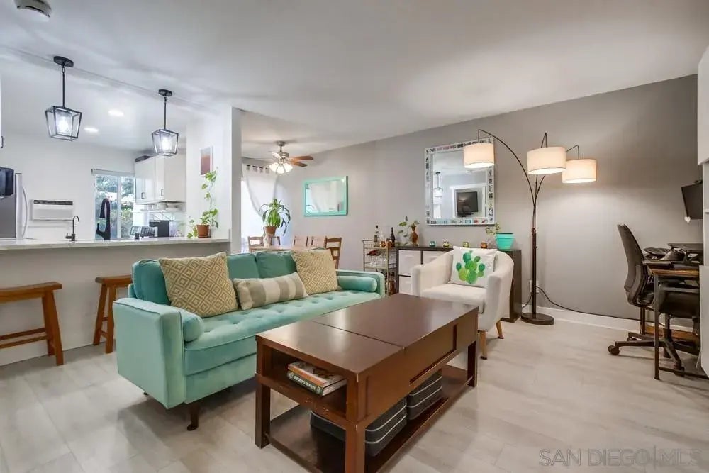 Welcome to this charming 1-bedroom, 1-bath condo in La Mesa! This desirable corner unit offers privacy with a cozy balcony perfect for enjoying your morning coffee or evening breeze. The spacious bedroom features a walk-in closet, providing ample storage space. The updated kitchen boasts modern finishes and updated flooring throughout adds a fresh, contemporary feel. Stay cool on warmer days with the wall a/c unit or enjoy access to the community pool and spa, ideal for relaxing or socializing with friends and neighbors. Additional guest parking is available, making it easy to host visitors. Conveniently located near shopping, dining, and with easy access to major highways, this condo offers the perfect blend of comfort and convenience.
