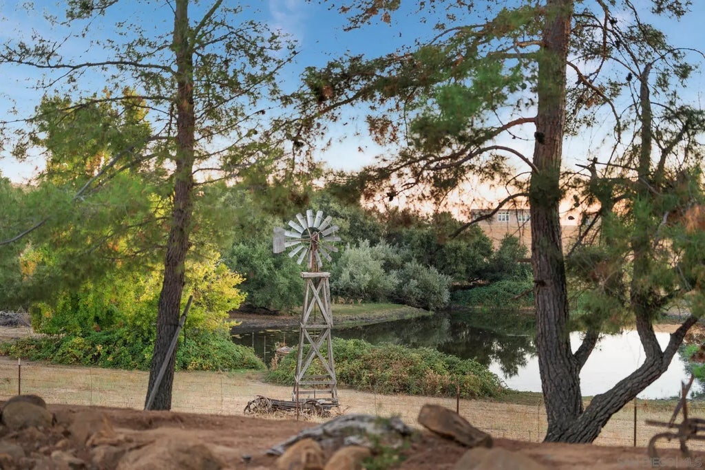 Picturesque, 15-acre ranch in Historic Mesa Grande. Ancient oak trees, pastures & a serene pond attracts local wildlife inviting peace & quiet. The custom-built 2,919 sq ft home features 3BDs, 2.5BAs, large Pella windows, cedar-lined walls, & paver floors. The living room offers a wood-burning stove, & the primary suite has an en-suite bath, dual sinks & a step-down shower. The kitchen has dual ovens & a gas stovetop. Included is a large barn, fenced dog run, private rose garden & green meadows. See Video