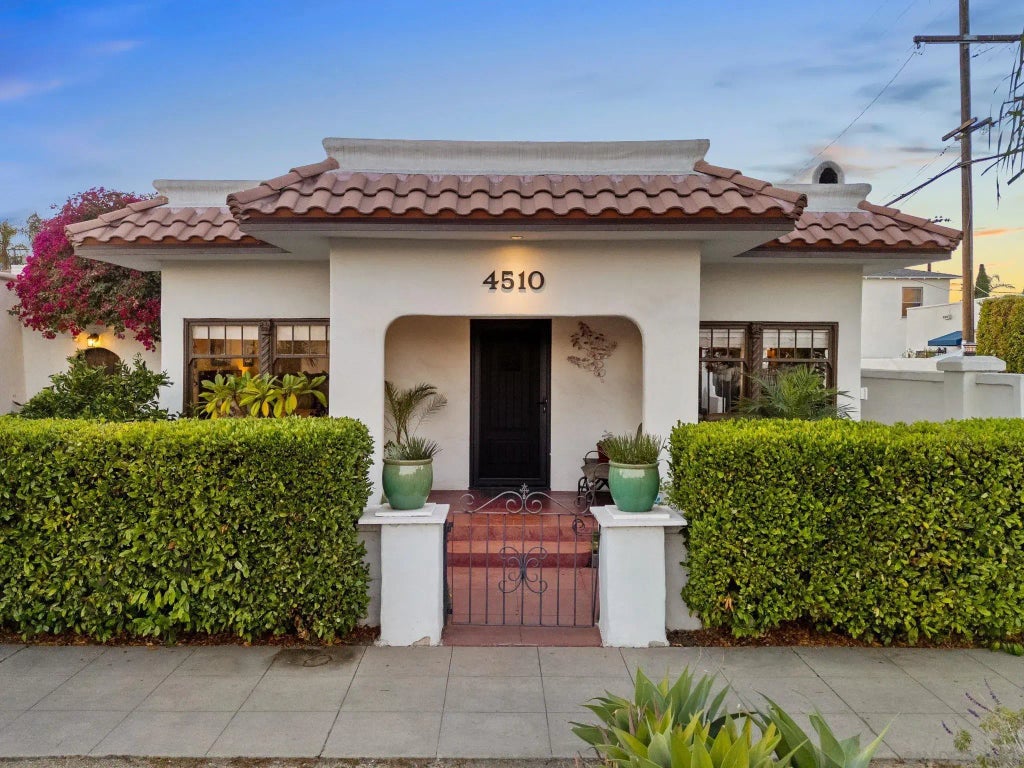 Nestled in the heart of Kensington and just a short walk to the village’s delightful restaurants and boutique shops, this meticulously remodeled 1925 Spanish charmer is a rare find. Step inside and be greeted by beautiful bamboo hardwood floors that flow throughout a thoughtfully designed floorplan, featuring two spacious bedrooms and two stylish bathrooms. The cozy living room offers character with original built-ins and a beautifully tiled fireplace, setting a warm, inviting atmosphere. Open to the great room, the modern kitchen shines with leathered granite countertops, high-end appliances, including a Viking refrigerator and induction range, making it ideal for those who love to cook and entertain. The primary bedroom is a true sanctuary, featuring a spacious walk-in closet and a stunning en-suite bathroom. New dual French doors lead directly from the bedroom to the serene backyard, allowing for an effortless indoor-outdoor flow, perfect for morning coffee or an evening breeze. Out back, the private yard is a retreat of its own, complete with stamped concrete, a French drainage system, and a charming pergola perfect for gatherings with friends and family. Additional conveniences include a 1-car garage, an extra parking space, a new roof, updated central heating and air, refreshed exterior stucco, and a 200-amp electrical service. This home blends historic charm with modern updates, offering unparalleled value in Kensington Village!