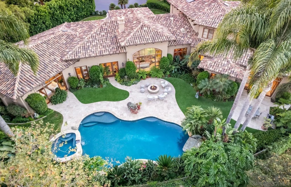 Welcome to 16404 Avenida Cuesta Del Sol, nestled in the prestigious enclave of Rancho Santa Fe's Fairbanks Ranch. This distinguished residence, crafted by renowned builder Danny Hampel in 2004, offers unparalleled luxury ranch living. A dramatic entry unfolds as you approach the circular driveway, showcasing remarkable curb appeal at the end of a serene cul-de-sac. Spanning an impressive 7,326 sf, this home lives like a single-level estate, featuring five spacious bedrooms, five and a half opulent bathrooms, an executive office, and a bonus room, all within an exceptional floorplan designed for both comfort and sophistication. Step outside to discover beautifully manicured, low-maintenance grounds that offer breathtaking views and a private outdoor oasis. The gorgeous pool and spa are perfect for relaxation, while the outdoor dining area and fire pit cater to outdoor entertainment and enjoyment. This estate is a testament to luxury living, offering a harmonious blend of elegance, comfort, privacy, and amenities, ideally located close to schools, shopping, dining, and more.