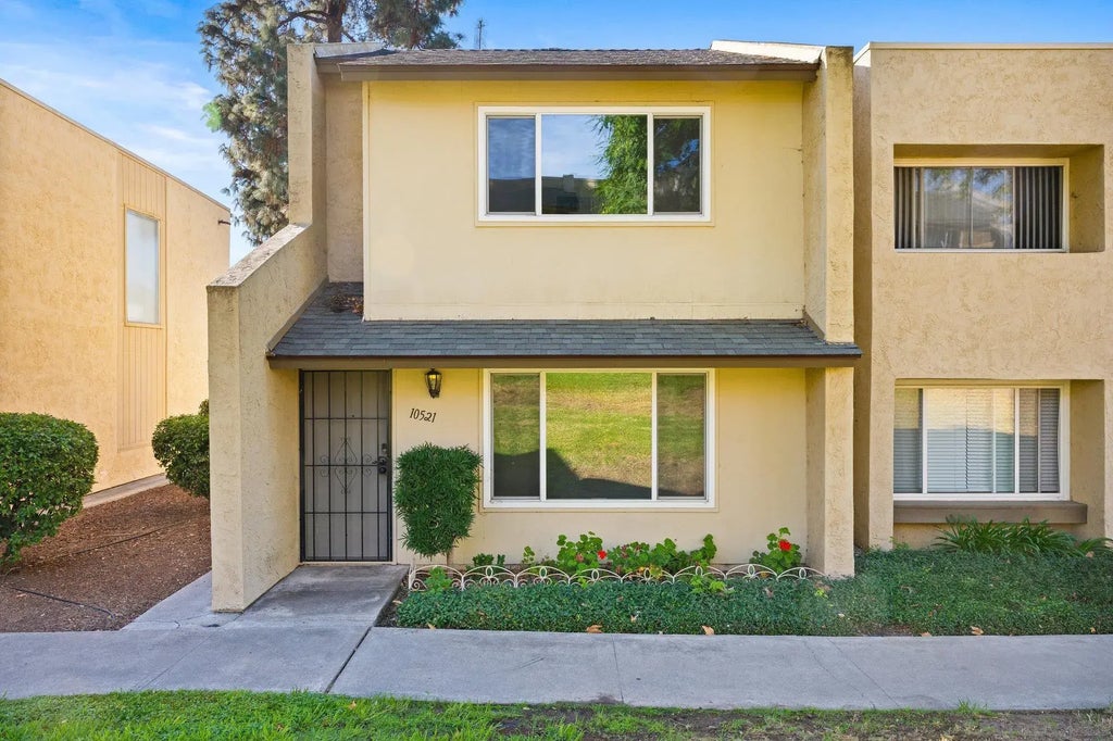 Discover this delightful two-story condo in the highly sought-after community of Corsican Villas. This home features a convenient main floor bedroom and a private courtyard, perfect for relaxing or entertaining. Step inside to find an open kitchen showcasing light wood cabinetry and stylish tile flooring, with lovely views of the courtyard. The adjacent laundry room adds to the functional layout of the main level. Upstairs, you'll find spacious bedrooms with ample closet space and ceiling fans for added comfort. The property also includes a two-car garage, providing convenience and storage. Enjoy community amenities like a refreshing swimming pool and scenic walking paths. This charming condo is the ideal place to call home!