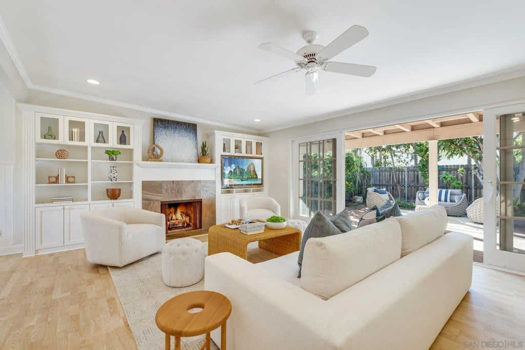 Charming beach cottage in the heart of La Jolla Shores - two blocks to the beach and out of the fray. Private and gated, with two lovely courtyards for easy indoor / outdoor living, hardwood floors throughout and 3 full baths, one with spa tub and steam shower. Electric car charger with built-in storage in the garage. Second story potential. Wonderful family friendly neighborhood, walking distance to the beach, the shopping and easy access to UCSD and the freeway.