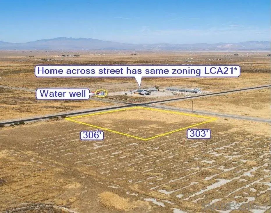 No HOA, 2.13 acre corner lot with power to the property in a desirable location with legal access on the corner of two paved roads with a total paved street frontage of 600 FT just 2 miles outside the city of Lancaster. This land has favorable LCA21* zoning allowing for a manufactured home PLUS a second home for rental opportunities. Farming and animals are allowed including the raising, care and upkeep of horses, chickens, goats and pigs. This property, like many of the farms and homes in the area, is in flood zone A and as a result, has some of the richest farmland in the high desert region. A well and septic system are required throughout the area for water and waste disposal and having a well for water is much cheaper for farming than being connected to a city water line. Live in the country just 2 miles outside the city where there is a growing job market and amenities that make this property a great investment and place to build your future home and business. Per zoning, you can farm the land traditionally and/or with a greenhouse and hydroponics. Another benefit of LCA21* zoning gives you the right to set up a roadside stand for the display and sale of agricultural products raised on the property. This corner lot is in the perfect location close to subdivisions and customers to set up an organic produce market. Numerous home occupations are permitted that allow for the construction of a work shop or office as an accessory structure to your home.