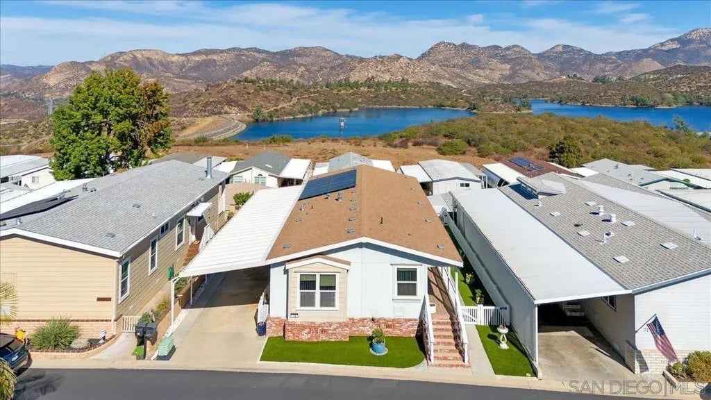 Price Improvement!! Welcome to your dream home in Lake Jennings Park Estates, where you own both the home and the land! This stunning property offers panoramic views of Lake Jennings and the surrounding mountains. Imagine starting your mornings on the back porch, watching the sunrise with a cup of coffee in hand. Situated in a premium location with low HOA fees of just $241/month, this home is FHA and VA approved. The paid-off solar panels mean the current homeowner enjoys $0 electricity costs! The master bathroom has been recently remodeled, featuring elegant marble countertops, tile flooring, and a custom tile shower. The home also boasts new turf and vinyl fencing around the front, side, and backyard – perfect for your furry friends. Enjoy the bonus courtyard sitting area, just off the spacious back deck. Additional upgrades include fresh interior paint, modern light fixtures, a new sliding back door, upgraded railings, and a workshop with electricity and a cooling unit. Plus, the home is equipped with a whole-house water softener. You’ll have access to great amenities including a pool, hot tub, craft room, and various community events. 55+ living at its finest! This gem won’t last long—schedule a showing today!