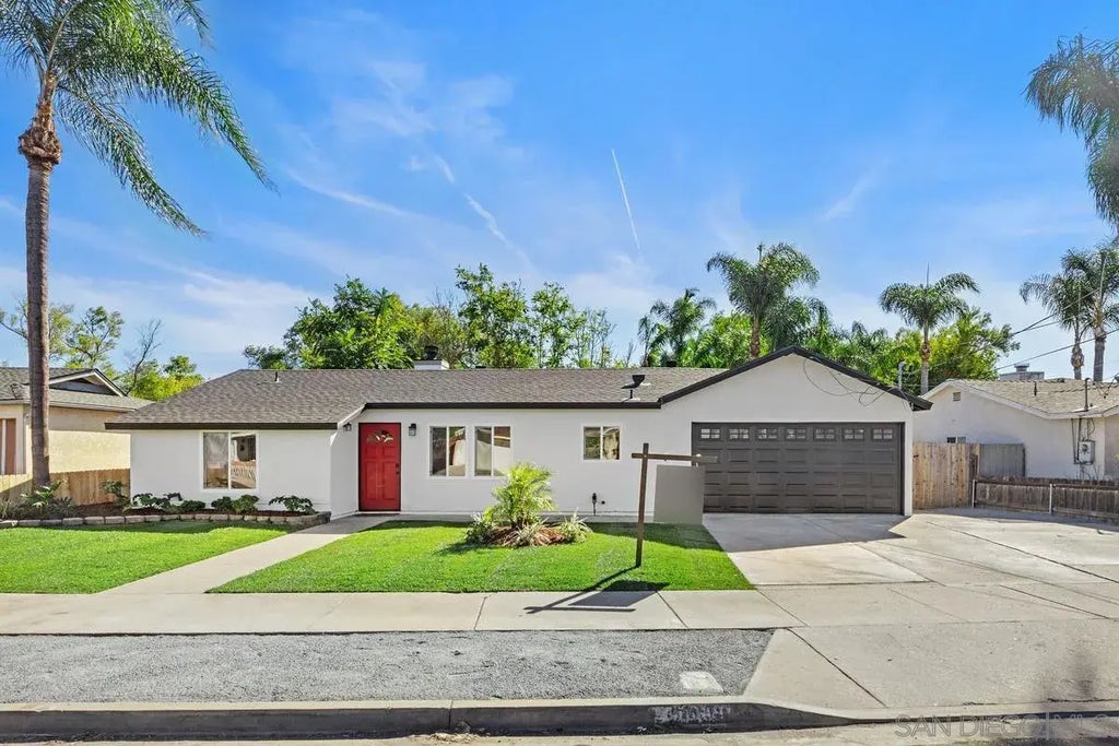 Welcome to 9049 Gorge Ave in Santee, CA Range Priced 999,990-1,099,000 a stunningly remodeled 3-bedroom, 2-bath home blending modern design with functionality. This open-concept layout features an updated kitchen with stainless steel appliances, insta-hot water, and bi-fold patio doors opening to a private, oasis-style backyard complete with cabana, grass area, and a tropical-inspired pool – perfect for entertaining. Inside, find new flooring, large baseboards, and spa-inspired bathrooms that add elegance. The primary suite includes a spacious walk-in closet and luxurious bath with integrated bench. High-tech adjustable canned lights and ceiling fans ensure comfort throughout. The attached two-car garage offers a wash sink, custom storage, and updated switches/outlets. Plus, the separate third garage holds potential as a workshop or conversion to an ADU/Airbnb rental, adding income or guest space options. Situated on a large lot with no rear neighbors, there's ample space for RV/boat parking. With new windows, paint, and roof, this move-in-ready home is the perfect blend of luxury and versatility!