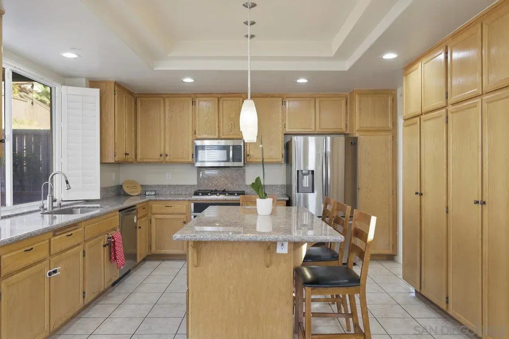 Discover the perfect blend of comfort and convenience in this Rancho Del Rey 5-bedroom, 3-bath home, designed with a first-floor bedroom and full bath ideal for guests or multi-generational living. Located in Chula Vista, this home has no HOA fees and no Mello-Roos, and offers easy access to top-rated schools, parks, Terra Nova shopping, and the 805 Freeway. Vaulted ceilings enhance the spacious living areas, including the primary suite with a walk-in closet. The kitchen features granite countertops, a large island, and stainless steel appliances, flowing seamlessly into living spaces with rich dark chocolate wood floors and a cozy dual-sided fireplace. Recent updates include a new heating and air system, exterior paint, new patio door, and a water softening system with an alkaline faucet in the kitchen and laundry-specific filtration. Extra touches like a Closet World desk in the downstairs bedroom, added garage storage, and a sauna bring style and convenience to daily life. The home also includes low-maintenance turf and solar panels for efficient energy savings, along with an included washer, dryer, and refrigerator.