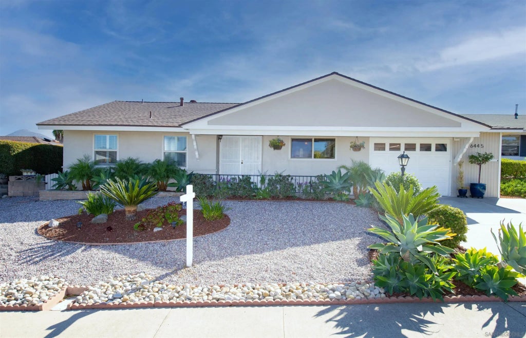 Welcome home to this beautiful home featuring gorgeous mountain views located in Seven Oaks, an Active Adult 55+ Community in the heart of Rancho Bernardo. Upon entering the home, you step into the inviting living room allowing you to relax and enjoy the beautiful rises of the sun and moon from a breathtaking large picture window. The home has completed numerous major priced items which include a newer roof as of 11/2023, a full kitchen remodel 2018, a newer HVAC system and ducts as of 2020 and bathrooms remodeled 2022. Popcorn ceilings removed with an entire interior freshly painted in 10/2024. In addition, there is an inviting covered back patio to relax and entertain guests. While CRS TAX records show 1,197 sq. ft., a room addition added prior to the current owner, increased the sq. of the home to 1,394 sq. ft.