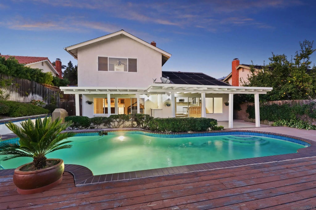 An entertainer’s dream, this beautifully updated Tierrasanta home offers the perfect blend of comfort and style! Stunning city views provide amazing night vistas of twinkling lights. A private, serene front courtyard adds a great space to dine al fresco or enjoy your favorite beverage in the idyllic San Diego weather all year long. Large windows bathe the interior in natural light throughout this open concept home. The remodeled kitchen boasts natural stone counters, while the built-in wet bar adds a unique touch that will impress your guests. Stay comfortable year-round with central AC and heating or gather everyone around the warm, inviting fireplaces in the family and living rooms. The low-maintenance, drought-resistant front yard adds curb appeal, and the backyard is an oasis, complete with a covered patio, sparkling pool and spa, mature fruit trees, and plenty of space for entertaining or lounging in the sun. Upstairs, you will find all bedrooms and two full bathrooms, including the primary suite. Ample storage throughout and a prime location near Mission and Fashion Valley,Tierrasanta boasts easy access to the 15, 8 and 52 freeways along with top-rated schools, only minutes from Mission Trails Regional Park for some of San Diego's best hiking, a short 15-minute drive to the beach and 10 minutes to downtown San Diego. With plenty of space, excellent improvements making daily life and entertaining effortless, and a convenient location, this home is a rare find you won’t want to miss!