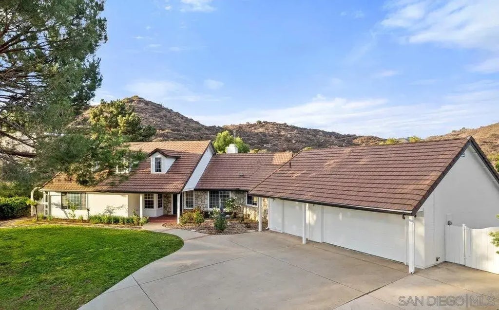 Welcome to this charming 4-bedroom, 2.5-bathroom single-story home located on a private road in scenic Fallbrook. With 2,290 sq. ft. of living space and situated on 2 acres of flat, usable land, this property offers breathtaking mountain views and endless possibilities. Inside, you’ll find a spacious kitchen and a cozy family room featuring a fireplace with built-in shelving. The primary bedroom is a serene retreat with a dual-sink vanity, soaking tub, and walk-in closet. Step outside to a large patio, perfect for entertaining, surrounded by producing fruit trees and open space. This property has room to grow, with potential for an ADU/guest house, horse corral, or more. Additional highlights include a 3-car garage with a workshop and a storage shed. Conveniently located just minutes from the Santa Margarita River Trail and Fallbrook Village’s shops and restaurants.