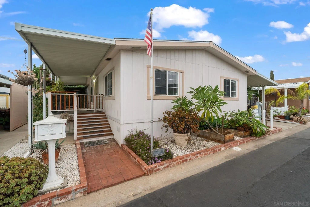 BRAND NEW ROOF & SPACIOUS BACKYARD! Located in the desirable Rancho Mesa gated 55+ community, this charming 3-bedroom, 2-bath manufactured home offers both comfort and convenience. High vaulted ceilings create an open and airy feel, while the cozy fireplace in the living room makes for the perfect spot to unwind. The kitchen is fully equipped with all appliances, ample cabinet storage, and generous counter space, making meal preparation easy. A separate laundry room with a washer and dryer adds extra convenience. Outside, the spacious backyard provides plenty of room for gardening, relaxing, or entertaining. With a space rent of $1,650, this home is a fantastic opportunity to enjoy a peaceful and well-maintained community.