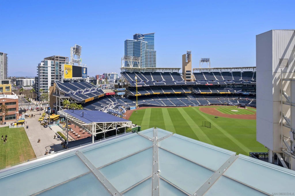One of a kind fully furnished Legend condo with huge patio looking right into home plate at Petco Park! This unit has one of the most unique patios in all of downtown San Diego, as it is one of the largest you will find, where you can literally watch the Padres play. This gorgeous furnished residence has been remodeled with new counters, custom lighting, built-in benches and cabinet, murphy bed, fireplace, nest HVAC system, and outdoor bar outside on patio. Enjoy a cold beverage on the coolest patio in the coolest building downtown and watch your San Diego Padres! Unit comes with one parking space and a storage unit.