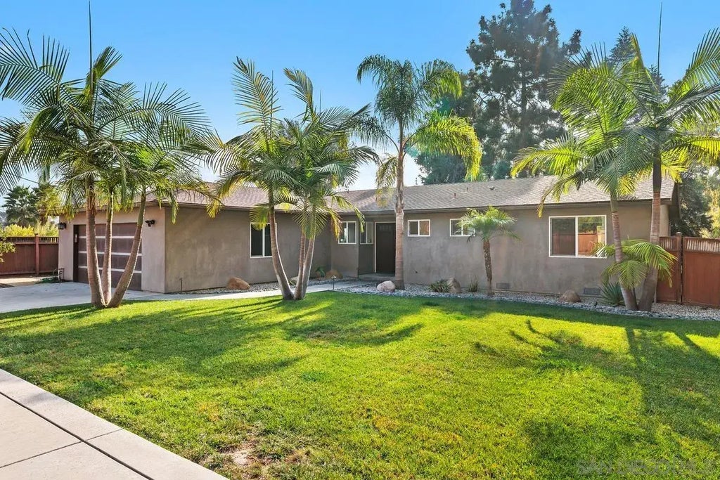 Lovely 1-level, remodeled Olivenhain home on a half-acre lot on a quiet private street well off the main road! This sunny home offers an open floorplan, pleasant country views, and oversized private backyard. The spacious kitchen with quartz counters opens to living room and dining area. The living room offers fireplace, Brazilian wood floors, and cantina accordion doors to blend your indoor/outdoor California living! Plenty of room to expand the home, or add an ADU or even a pickleball court! The finished double garage has an epoxy floor and storage cabinets galore. Don't miss the RV parking, lemon and plum trees, and professional landscaping.