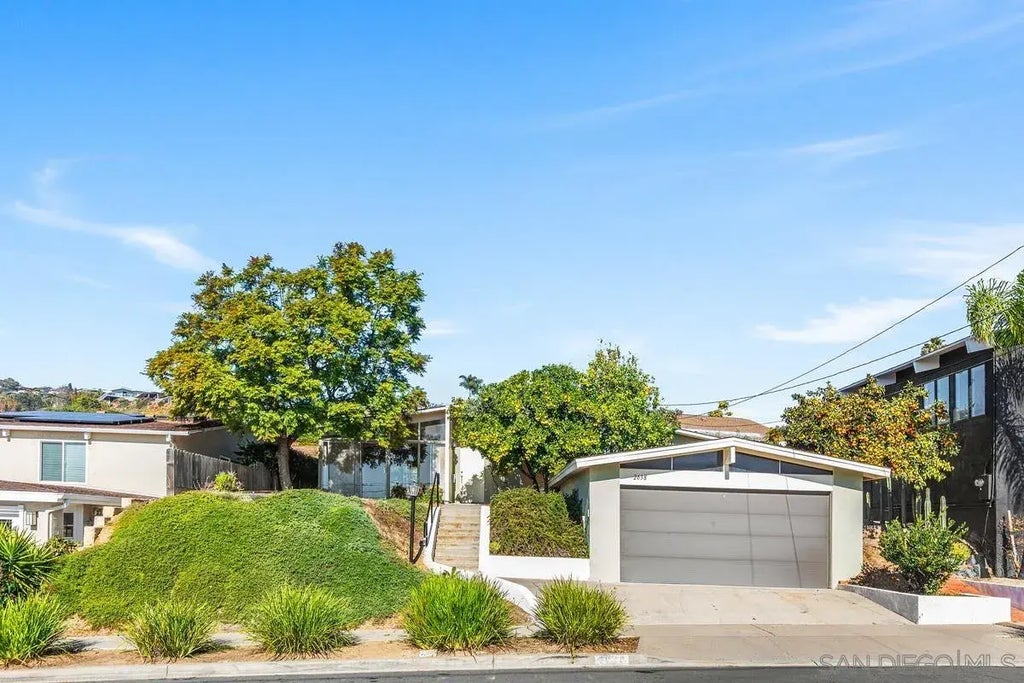Sunny, vintage Mid-Century Modern "Pacifica" home in north Pacific Beach! Offers bay and ocean views, large master bedroom, lofty vaulted ceilings, and Anderson windows galore. Don't miss the new 2023 heater (ready to add A/C), fruit trees, and two-car garage. Neighborhood homes sell up to $3.5M and are appreciating! Update this warm, very livable house into your dream home!