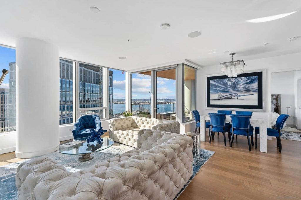 Available April 1st 2025. Turnkey luxury furnished rental at the iconic Pacific Gate offers an unmatched blend of sophistication and comfort, showcasing breathtaking panoramic views that span from the vibrant city skyline to the sparkling San Diego Bay and the Pacific Ocean. Upon entering, you're welcomed by an abundance of natural light streaming through expansive windows. The chefs kitchen features sleek appliances, Caesarstone countertops, and an elegant layout perfect for culinary creativity. The primary suite offers sweeping water views and a spa-like ensuite bathroom, complete with luxurious finishes, an LED-lit anti-fog mirror with a built-in TV, a soaking tub, and a separate glass-enclosed shower. This residence seamlessly blends beauty with modern technology, boasting smart home features that allow effortless control of lighting, climate, and motorized window shades. A private balcony invites you to unwind with your morning coffee or enjoy a glass of wine while watching the sunset over the horizon. Resort-style amenities elevate the experience further, including 24-hour concierge service, porter services, a pool terrace with cabanas, an outdoor cooking area, a cozy fire pit, a resident lounge with a catering kitchen, a screening room, a business and conference center, and exclusive access to a residents-only yacht share program, a luxury car fleet, and onsite restaurant. The best of America's Finest City is at your doorstep.