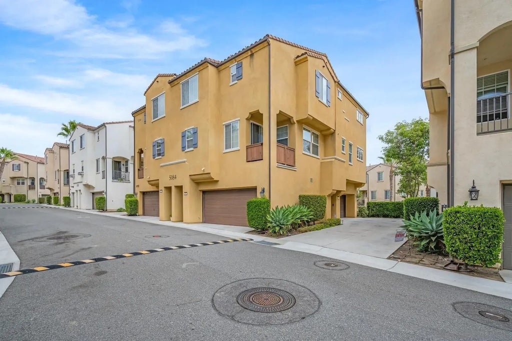 Stunning 2 Bedroom, 2.5 Bathroom Home in Desirable Gated Community. Welcome to this bright and elegant corner unit featuring 2 bedrooms, 2 full bathrooms, and a convenient powder room. The interior boasts warm tones throughout, with granite countertops, stainless steel appliances, and espresso-colored cabinets in the kitchen. The open layout flows seamlessly from the kitchen to the living area, enhanced by recessed lighting and rich wood floors. Enjoy the comfort of a private balcony, a spacious walk-in closet, and ample storage space. Additional perks include work from home space, in-unit washer and dryer, and a two-car garage for secure parking. The community offers resort-style living with a pool and spa, perfect for relaxing after a long day. Located just minutes from the beaches, trendy downtown Oceanside, top-rated schools, and major freeways, this property is also close to public transportation and scenic trails. With its Spanish/Mediterranean architecture, this home provides a beautiful mix of style and function in one of the most desirable locations in Oceanside.