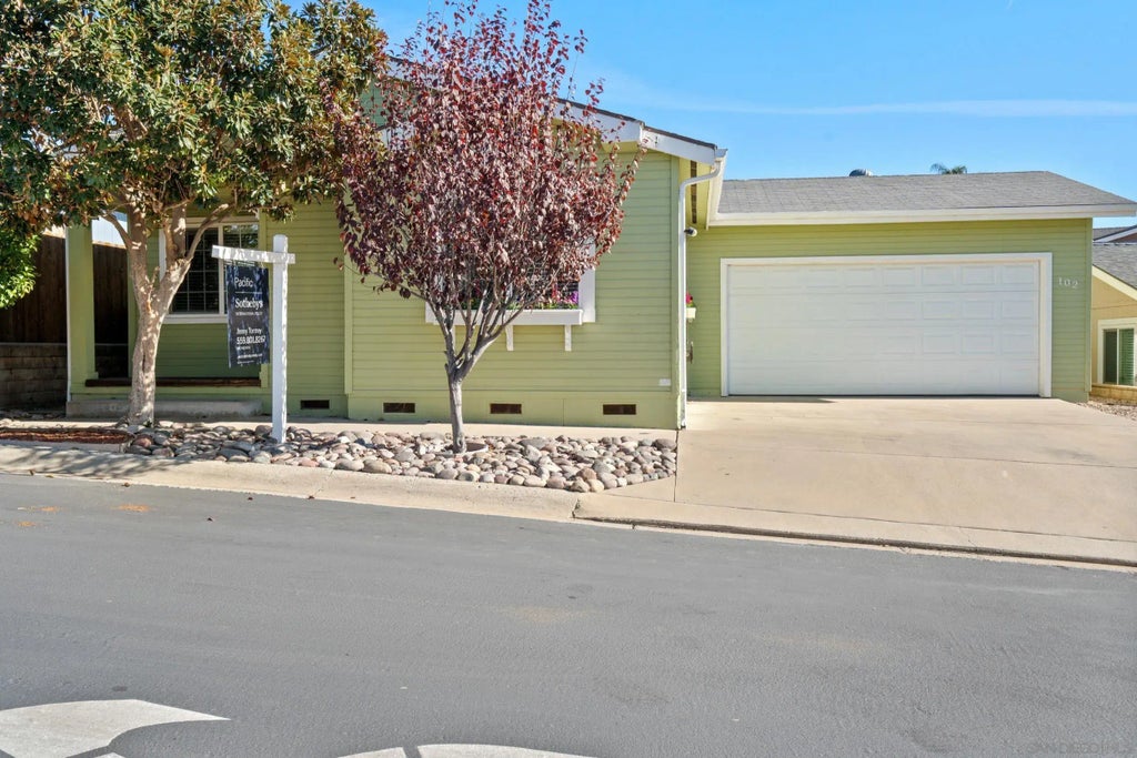 The best home you will find in this price range! Located in Woodcreek Estates in El Cajon, this charming 3-bedroom manufactured home is a MUST-SEE! Don't let the word "manufactured" deter you, it truly feels like a single-family home with a driveway, 2 car garage, and backyard. Upon entry, you're greeted by an inviting open-concept layout, featuring a renovated kitchen, dedicated dining area, and a spacious living room. Bathed in natural light, the home boasts dual-paned windows, central heating and air, and engineered wood laminate floors throughout, creating a warm and welcoming atmosphere. The kitchen is updated with granite countertops, new floors, stainless steel appliances, and a gas stove for cooking enthusiasts. The luxurious primary suite opens up to the backyard so you can enjoy the summer breeze from your bright bedroom. The primary bathroom is equipped with a large tub, double sinks, standing shower and vanity. The other two bedrooms share a full bathroom in the hallway, which leads you to the laundry room, just next to the two car garage. Enjoy low maintenance landscaping, an orange tree, magnolia tree, and guava tree, fully gated backyard, and front and back covered patios to relax on. Surrounded by foothills you get the peaceful country feel while still being close to town, shops, and community. For your leisure, the community offers a clubhouse, pool, hot tub, gym, billiards, fireplace, guest parking and on-site staff. Don't miss the chance to call this delightful property home and experience the best of Woodcreek Estates Living.