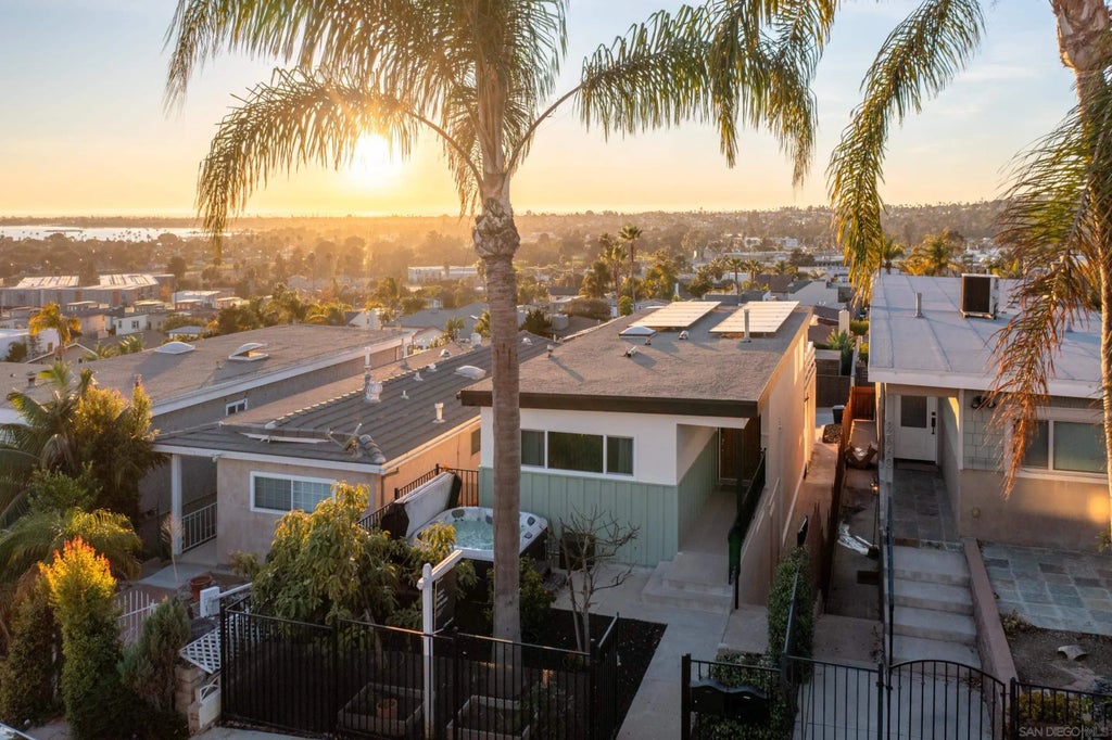 Welcome to this beautifully updated split-level home in the highly desirable Bay Park neighborhood. Perched on a hill with sweeping views of Mission Bay, this home offers a perfect blend of style, comfort, and convenience. Step inside to an open, light-filled living space. The main level features a spacious primary suite, a modern kitchen with sleek stainless steel appliances, and a cozy living room that seamlessly flows out to a large deck. Whether you're relaxing or hosting friends, the deck is the perfect spot to enjoy breathtaking views of the bay and sunsets. The home has been thoughtfully updated throughout including: owned solar, air-conditioning, refinished hardwood floors, a beautifully renovated primary bathroom and kitchen, EV charging, tankless water heater. The lower level offers a fully separate one-bedroom, one-bath suite with its own private living room and kitchen—ideal for guests, a home office, or AirBnB/rental income potential. Situated just minutes from, Mission Bay and major freeways, this home offers easy access to some of San Diego’s top attractions while maintaining a peaceful, private retreat. Experience the perfect balance of modern living and incredible views in this exceptional Bay Park property.