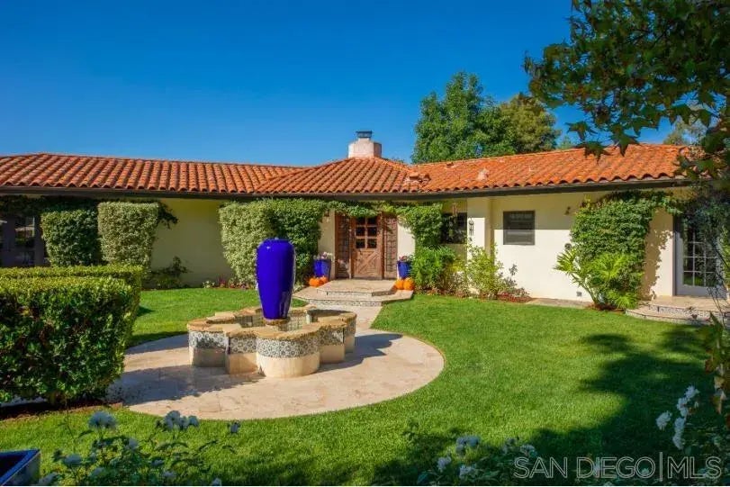 Welcome to 6410 La Valle Plateada Street, a Rancho Santa Fe residence that is quintessential of Rancho Santa Fe living. Just a minutes walk to The Village of Rancho Santa Fe, award winning schools, shopping and world renowned golf courses. This property offers a truly luxurious lifestyle in one of Southern California's most prestigious communities. As you enter the long, private, roundabout driveway, you're greeted by mature landscaping, green grass, and beautiful foliage surrounding this one-of-a-kind home. Walk through the front courtyard and you are welcomed by the overall aesthetic and appeal of this residence. As you step inside the home, you're immediately captivated by the warm and inviting ambiance created by the reclaimed wood floors that grace the main living areas. These rich, reclaimed wood floors not only add character and charm but also reflect a commitment to the craftsmanship of the home. The heart of this home is the expansive and unique living room, with an all stone statement fireplace, next to the updated kitchen, where culinary dreams come to life. Adorned with Carrera marble countertops, this chef's kitchen is open to the living and dining room providing a great gathering place for family and friends. The elegant marble surfaces offer a striking contrast to the custom cabinetry and stainless steel appliances, making this kitchen a focal point for both cooking and entertaining. See supplement...