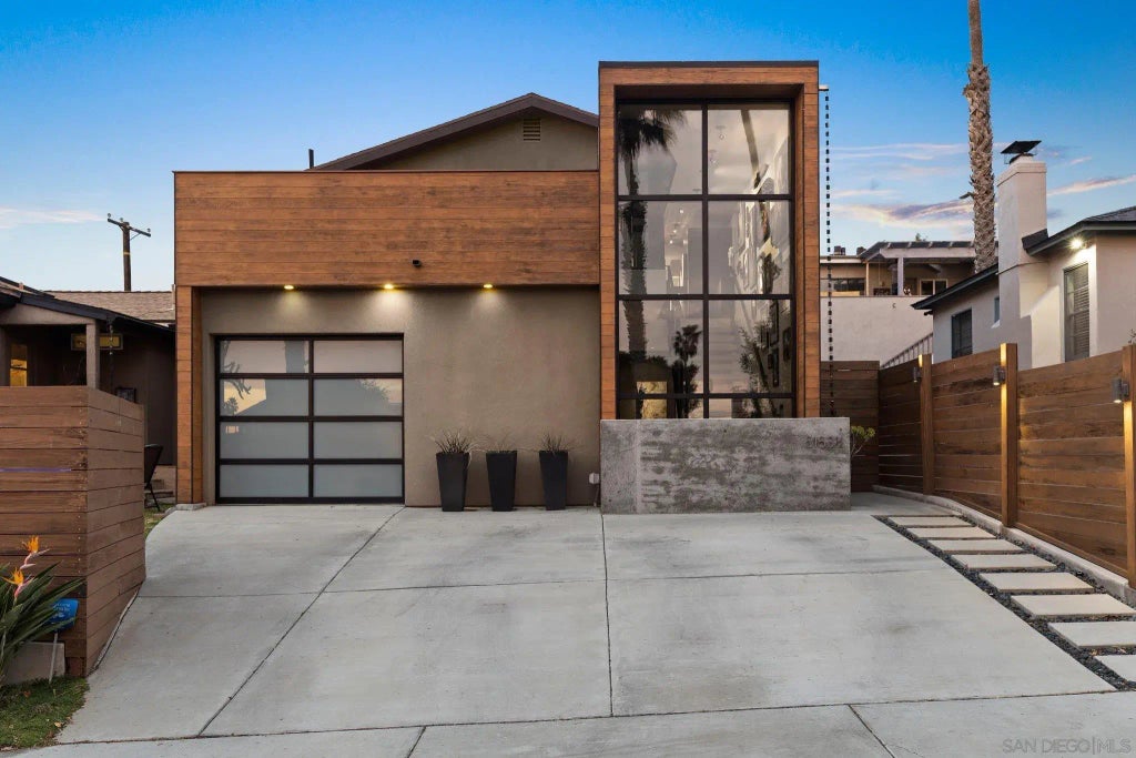 Wake up to panoramic ocean, city light & coastline views all the way to Mexico and catch the sunset & Seaworld fireworks from your private, 2nd floor deck with 10' La Cantina-style folding door and built-in gas firepit. La Jolla schools! The Sapphire House is a custom-built, 2-story modern beach home. Architecturally designed - 1758 SF with 2 bedroom suites - one up and one down - with optional 3rd bedroom, walk-in closet, 2 baths, & 2nd floor view deck. Wall of windows bathe the home in natural light and the dual built-in office is perfect for working from home. Small fenced sideyard with outdoor shower is a great option for pets or your surfboards. Low-maintenance stained concrete and travertine floors with custom open-riser steel & cable staircase. Bathrooms feature quartz counters and mosaic floor-to-ceiling tile. Oversized kitchen & great room have vaulted wood ceilings, ample counter space with breakfast bar, custom tile inlay, stainless appliances, and open up to the 2nd floor deck for perfect indoor/outdoor living. Private and yet an easy stroll to the beach, boardwalk, shops & restaurants.