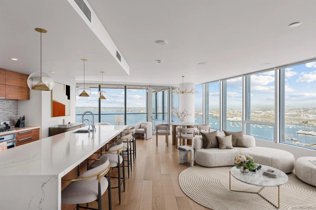 Located on the 37th floor of the prestigious Pacific Gate, Estate 3701 redefines luxury living in San Diego. Rarely available for its expansive layout and unmatched ocean views, this penthouse-level residence spans approximately 2,315 sq. ft. and boasts exquisite interiors designed by the award-winning Hirsch Bedner Associates (HBA). The custom-designed kitchen is outfitted with top-tier appliances from Wolf, Sub-Zero, and Miele, making it a culinary masterpiece. With three bedrooms plus a den, this west and north-facing home features a generous primary suite and an expansive private terrace offering breathtaking views of the city, Point Loma, San Diego Bay, Coronado, and the Pacific Ocean. As one of Pacific Gate’s finest residences, this home provides unparalleled elegance and access to world-class amenities. Residents enjoy exclusive concierge services, a state-of-the-art fitness center, a luxury fleet of private cars, exclusive yacht share access, and a pool deck that rivals five-star resorts. The building's emphasis on privacy and exclusivity ensures a serene living experience for the discerning buyer. With its iconic design, premier location, and unparalleled offerings, Estate 3701 is a rare opportunity to own a piece of San Diego's finest living. Offered $4,699,000 - $4,799,000.
