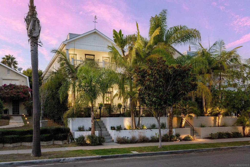 This custom Coronado home unlocks a sought-after lifestyle of seamless indoor-outdoor living, relaxation and entertaining. Completed in 2015, the residence blends timeless architectural charm with every modern comfort in a luxurious open floor plan. From the inviting front porch to the rooftop deck with stunning views of the Coronado Bridge and downtown skyline, every detail has been thoughtfully considered. The main level welcomes with an airy great room that flows effortlessly from the porch, through light-filled living and dining areas with a fireplace, and out to the backyard. The designer chef’s kitchen boasts quartz counters, Monogram appliances, white Shaker cabinetry, wine fridge, island, and breakfast bar. Centor folding doors reveal a covered California room and low-maintenance yard complete with built-in BBQ, TV and turf lawn. Upstairs, retreat to your primary suite with a private balcony, spa-like bath with oversized shower, and walk-in closet. Two additional bedrooms include one with access to a second large balcony, while a second full bath and laundry add convenience. Custom shades and shutters are showcased throughout. Enjoy panoramic views from the rooftop deck or rinse off in the outdoor shower after a day at the beach. With a detached two-car garage and close proximity to Orange Avenue, Spreckels Park, beaches and more, this home combines comfort, accessibility, and all the charm of Coronado living.