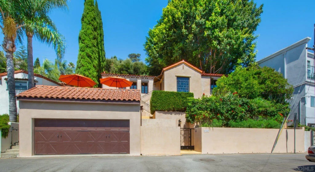 This beautiful Spanish Villa embodies the essence of an artist compound within a gated, private retreat and may be leased furnished or unfurnished with flexible lease terms, please call for details. The residence includes two offices, a media room and is adorned with original details. From the moment you enter you are instantly dazzled with a stunning stained glass window offering serene views, custom arched doorways, high beamed ceilings and an exposed brick fireplace imbuing the timeless elegance of 1930's architecture. Charm and character abound with lathe and plaster walls, coved ceilings and hardwood flooring. French doors open to a private saltillo tiled patio with BBQ and landscaped back yard, perfect for alfresco dining. The spacious chef's kitchen is complete with stainless steel appliances, walk-in pantry, kitchen nook, wine fridge and a large gourmet island. Cozy up by the fireplace in the media room and enjoy watching your favorite movies on a 7' built in screen with surround sound. This delightful Villa features a master bedroom suite with two walk-in closets an ensuite bath with custom wood cabinetry, dual sinks and a spa tub with an adjacent office which opens to a spacious patio for morning coffee breaks. Sited high above the street, the home offers private grounds with multiple terraces, gardens and lush landscaping including a mature orange tree and gated entry with intercom. Additionally, the home features a second office, laundry room and oversized two car garage with a 220V service for your electric vehicle.