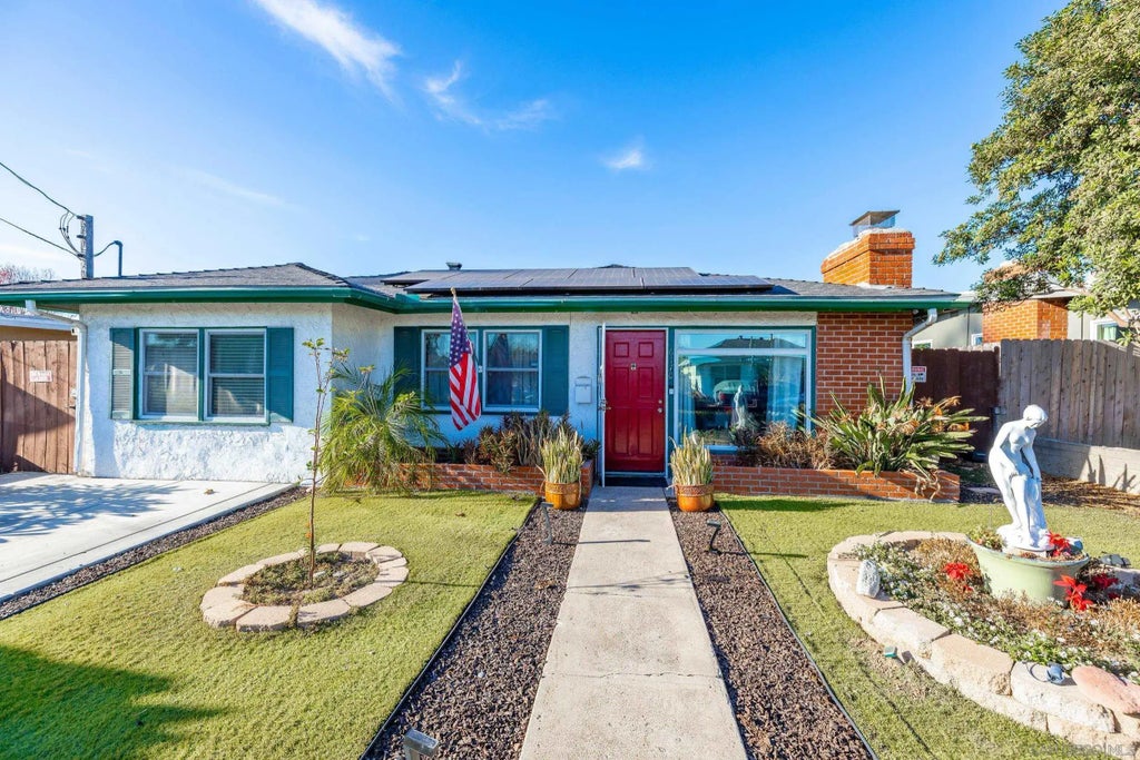 Charming single story three bedroom, one bath home with relaxing and spacious back yard! Bonus room/office and bonus bathroom included! Remodeled interior including upgraded kitchen and bathrooms with contemporary fixtures. Split unit combo AC/heating units in living room and bedrooms! Hardwood laminate flooring in living room and bedrooms. NO HOA FEES! OWNED SOLAR panels installed! Entertainer's delight back yard with BBQ grill area, gazebo and above ground spa! Flowing Koi pond with fish included.