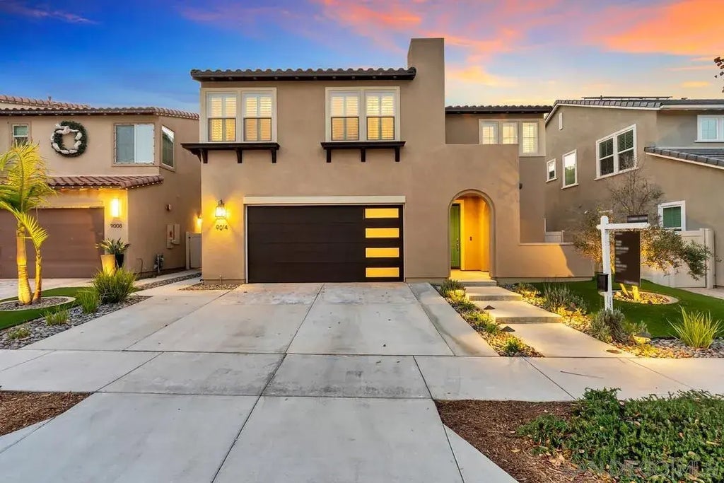 Welcome to this stunning modern home built in 2019, located in the sought-after Weston community in Santee. Move-in ready, offering 4 bedrooms, a loft, and 3 bathrooms, this home is packed with features like HomeSmart technology, fully owned solar, a tankless water heater, and a California Room complete with a built-in gas fireplace. The windows are beautifully dressed with Norman plantation shutters and automated shades, adding a touch of elegance. Step inside and be greeted by an inviting open floor plan filled with natural light, luxury vinyl plank flooring, and oversized windows. The gourmet kitchen is a chef’s dream, featuring white cabinets, quartz countertops, a stylish tiled backsplash, and stainless steel appliances, all seamlessly connecting to the living area for easy entertaining. The backyard is perfect for hosting, with low-maintenance synthetic turf, a putting green, a covered patio, a raised pergola-shaded area, an outdoor kitchen, mature fruit trees, and breathtaking mountain views. Upstairs, the primary suite offers a relaxing retreat with upgraded carpeting, a spa-like ensuite bathroom featuring dual vanities, and a walk-in closet designed by California Closets. Additional conveniences include an attached 2-car garage and a laundry room with a built-in sink. Located near top-rated schools, shops, dining, and the 52 Freeway, this home offers easy access to outdoor adventures like Santee Lakes and Mission Trails. The Weston community amenities include a clubhouse, pool, recreation center, and a sprawling park—making this home the complete package.