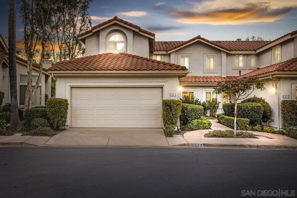 Welcome to your dream home at Villa Venusto! Step inside to discover an open floor plan on the main level that is perfect for entertaining. A recently updated kitchen that's a chef's delight, featuring sleek stainless steel appliances, elegant white shaker cabinetry, and stunning quartz countertops. The breakfast bar and nook provide the perfect spots for casual dining or morning coffee. The home's dual pane windows ensure a peaceful and energy-efficient environment, while offering breathtaking west-facing sunset views. With updated LVP flooring throughout, this home is move-in ready and waiting for you to make it your own. The spacious primary suite is a true retreat, complete with dual vanities, a separate tub and shower, and two generous closets. The secondary bedrooms are large and inviting, providing ample space for relaxation or work-from-home needs. Enjoy the outdoors in your private yard with low-maintenance turf, ideal for entertaining or simply unwinding. This home is attached on one side but lives like a single-family home, making it the perfect combination of low maintenance and private. Located in a gated community, you'll have access to fantastic amenities, including a clubhouse, gym, swimming pool, and tennis courts—all within walking distance. Enjoy easy access to I-15 and several shopping and dining options, all within the highly sought after Poway Unified School District. Don't miss out on this incredible opportunity!