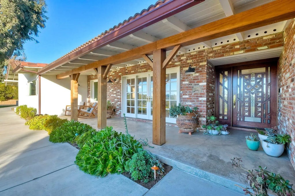 Custom single-level home with stunning sunset views in South Escondido at the end of a private cul-de-sac. This meticulously updated 4-bedroom, 3-bathroom home sits on 1.13 gated and completely fenced acres, offering 180-degree sunset views and was fully renovated in 2020. Designed for seamless indoor-outdoor living, the entry opens to a light-filled great room and combination dining room that connects the private, resort style pool area and front porch overlooking the beautifully landscaped front yard featuring an outdoor fire pit and seating with west views and zero maintenance turf. The spacious kitchen is a chef’s dream, featuring restaurant-grade appliances, including a 6-burner gas range with grill, dual ovens, and a side-by-side refrigerator/freezer, and flows into both the great room and cozy family room, anchored by a gas brick fireplace with a raised hearth and rustic mantle. The thoughtful floor plan offers privacy with a guest room, full bath, playroom/office, and laundry on one end, and the remaining bedrooms on the other, including a serene primary suite with its own sunset views. Additional highlights include built-in speakers throughout, a spacious laundry room with abundant storage and a utility sink, a three-car garage with smart-enabled doors and Spartaflex coated flooring, EV charging outlet, a smart front gate, fresh interior paint, smart dual-zone HVAC, two tankless water heaters, and 30 owned solar panels. A detached office space with wired internet, heating, and cooling is ideal for remote work. All room measurements are estimated, buyer to confirm.