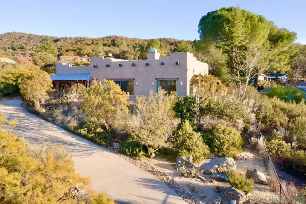 First time on the market, this stunning custom Santa Fe-style home is a true masterpiece. Lovingly designed by local artist Judith Doxey, this one-of-a-kind property showcases exceptional attention to detail and craftsmanship throughout. The 2-bed + optional 3rd-bed/office layout offers a warm and inviting ambiance with features like custom doors and cabinets, a spacious kitchen with island, and newer appliances. The primary suite boasts a luxurious soaking tub, a separate shower, a walk-in closet, and access to serene outdoor views. Set on over half an acre, the property is fully fenced and gated, ensuring privacy. The landscaped grounds are a peaceful retreat, featuring drought-tolerant and native plants and trees that perfectly complement the home’s natural surroundings. Enjoy breathtaking panoramic views of the mountains and valleys, along with unforgettable sunsets from your peaceful haven. Additional features include separate laundry room, covered carport, 3 large outbuildings, ideal for storage, workshops, or creative space. This is a rare opportunity to own a truly special home that blends artistic charm with thoughtful design. Don’t miss your chance to make it yours!