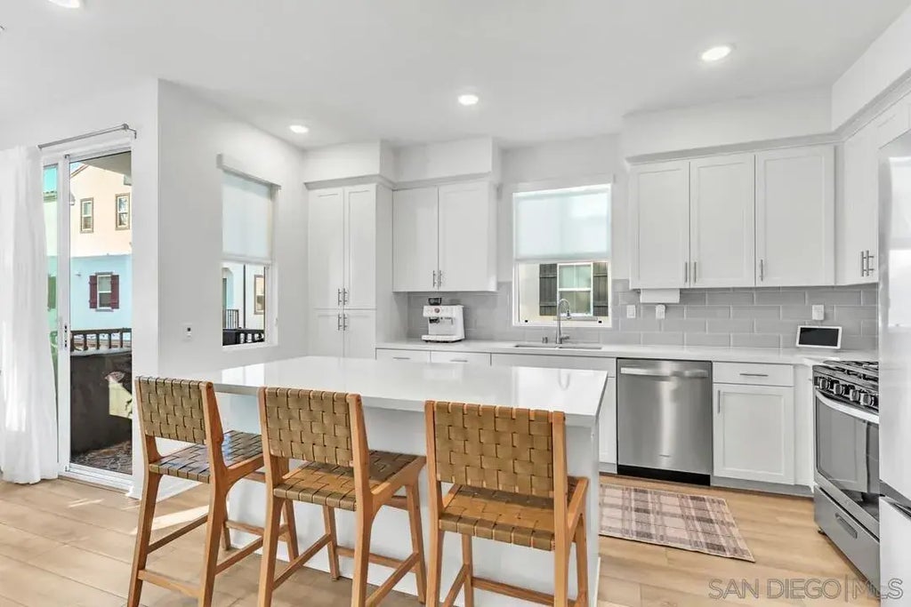 Embrace modern living in this recently built townhome of the Eclipse community in Escondido. This desirable corner unit offers both privacy and a 2-car attached garage. The bright, open floor plan is designed for comfort and style, featuring a sleek kitchen with plentiful cabinetry, ample counter space, and a central island with seating, perfect for hosting guests or enjoying casual meals. This floor plan features a covered balcony to relax and take in the surroundings. The primary suite provides a tranquil retreat with a dual-sink bathroom and walk-in shower. A secondary bedroom and full bath ensure space and convenience for family or visitors. Practical features include an in-unit laundry area and extra storage. The Eclipse community includes luxurious amenities such as a sparkling pool, rejuvenating spa, clubhouse, BBQ area, fire pit, and playground. With its convenient location near shopping, dining, schools, and major freeways, this townhome perfectly combines elegance, comfort, and accessibility.