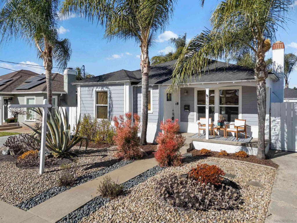 Welcome to this charming bungalow offering a cozy and flexible layout, nestled in the heart of La Mesa. This craftsman style home is a delightful 2 bedroom, 1 bathroom property with a bonus area that could be efficiently used as an open office space. Superbly situated on a generous 7,100 sq ft lot, there's ample opportunity for value-add potential including a detached two-car garage that is prime for an ADU conversion. The front yard features low-maintenance landscaping with mature palm trees, providing a stylish and serene curb appeal. Step up to the front door and be greeted by a welcoming open patio, perfect for outdoor seating, enjoying a cup of coffee, or getting some fresh air. Inside, the living room boasts hardwood floors and a charming fireplace, creating a warm and inviting atmosphere. The petite kitchen is the perfect size for cooking and meal preparation offering efficiency and charm. The flat, concrete driveway leads up to a fully fenced backyard where you will find the detached garage and an enclosed area with space for up to four cars. Whether you have an RV, boat, or need extra parking, this property’s lot offers plenty of options. With a new A/C system and solar already installed, the home is energy efficient and prime for enjoyment. Conveniently located just minutes from downtown La Mesa, the 94 or the 8 freeway, you'll enjoy easy access to shops, dining, and entertainment while still having the tranquility of a residential neighborhood. Don't miss this rare opportunity to own a piece of La Mesa's charm with room to grow. Come have a look!