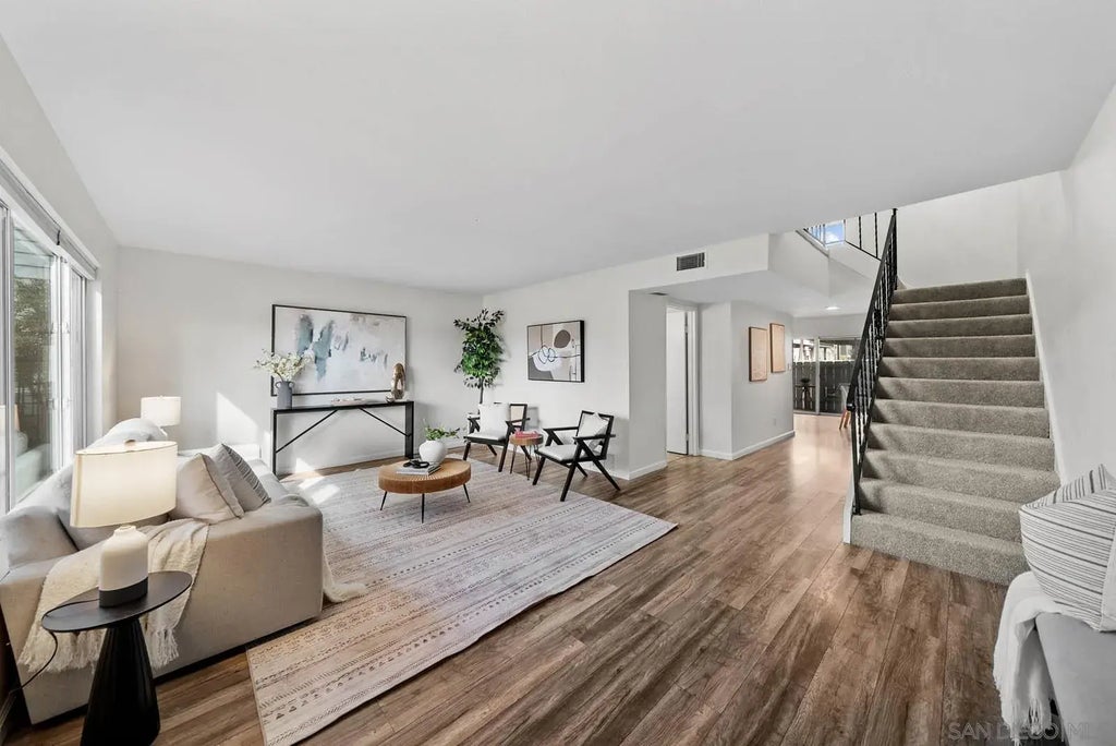 PRIME LOCATION & VA APPROVED- close to freeway, shopping & third ave! Move-in ready, spacious 3 bed 2.5 bath townhome in Chula Vista! This Open & bright floorplan features: rich wide plank flooring, modern kitchen with white shaker cabinetry, quartz counters, ample storage & breakfast bar, updated baths with tiled showers, cohesive color scheme and finishes throughout and covered patio area with view of community pool.Rare to find a unit this large that feels like a detached home- A must see!