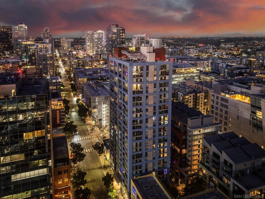 Iconic views at Icon! Padres fans, if you live here you will never miss a game. Enjoy private views of Petco Park from your own in-unit balcony or venture to the rooftop deck for a shared sky box with sweeping views of Petco park, the Coronado bridge, and downtown skyline. This open concept 1 bedroom 1 bath is move in ready with tons of natural light from the floor to ceiling windows. The kitchen opens up to the living room and features stainless steel appliances and granite countertops. The unit has fresh paint and new carpet in the primary bedroom. There is also in-unit laundry off of the kitchen and living room, and it comes with 1 private parking spot and storage room located in the garage. The HOA features a movie theater, well equipped gym, courtyard, and of course the coveted skybox which has spectacular downtown views, bbqs, and stadium style seating that looks directly into baseball games and concerts being held at Petco Park. This building is in the heart of downtown and walking distance to great restaurants, bars, and city night life.
