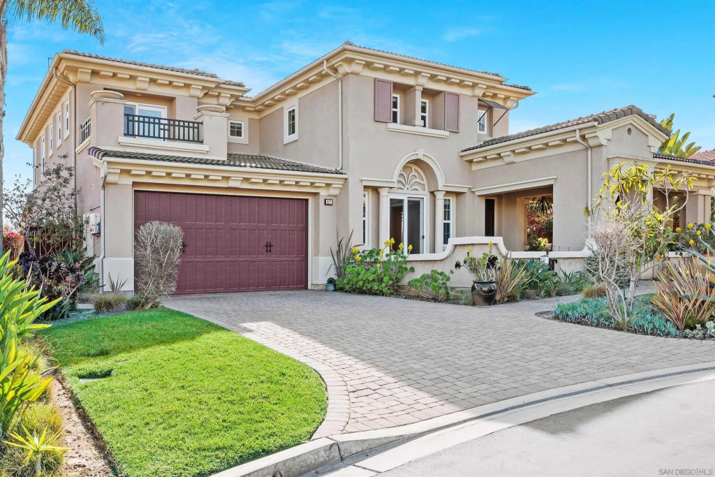 Discover coastal elegance in this former model home, nestled in an exclusive 12-home community less than a mile from Moonlight Beach. With 4,243 sq. ft. of high-quality construction—including a stucco exterior, concrete tile roof, and an outdoor loggia with a built-in fireplace—this home offers unparalleled value at just $657 per square foot, well below the area average! Enjoy the perfect blend of luxury and convenience, with easy access to local favorites like the San Diego Botanic Garden, Encinitas Ranch Golf Course, Swami’s, and Beacon’s Beaches. Situated in a top-rated school district with low HOA fees and no Mello-Roos, this home offers a rare opportunity to experience the best of Encinitas living. Step inside to find light-filled spaces, high ceilings, and premium finishes, including hardwood floors, designer tile, crown molding, cased windows, and 8” interior doors that enhance the home’s charm. The primary suite is a true retreat, featuring peak ocean views, a cozy fireplace, and a spa-like ensuite bath. Designed for both relaxation and entertaining, the spacious family room flows seamlessly into the chef’s kitchen, outfitted with GE Monogram appliances, granite countertops, a walk-in pantry, and ample cabinetry. Outside, the expansive 8,891 sq. ft. lot boasts a BBQ island, lush tropical landscaping, fruit trees, and a tranquil water feature—perfect for enjoying the California sunshine.