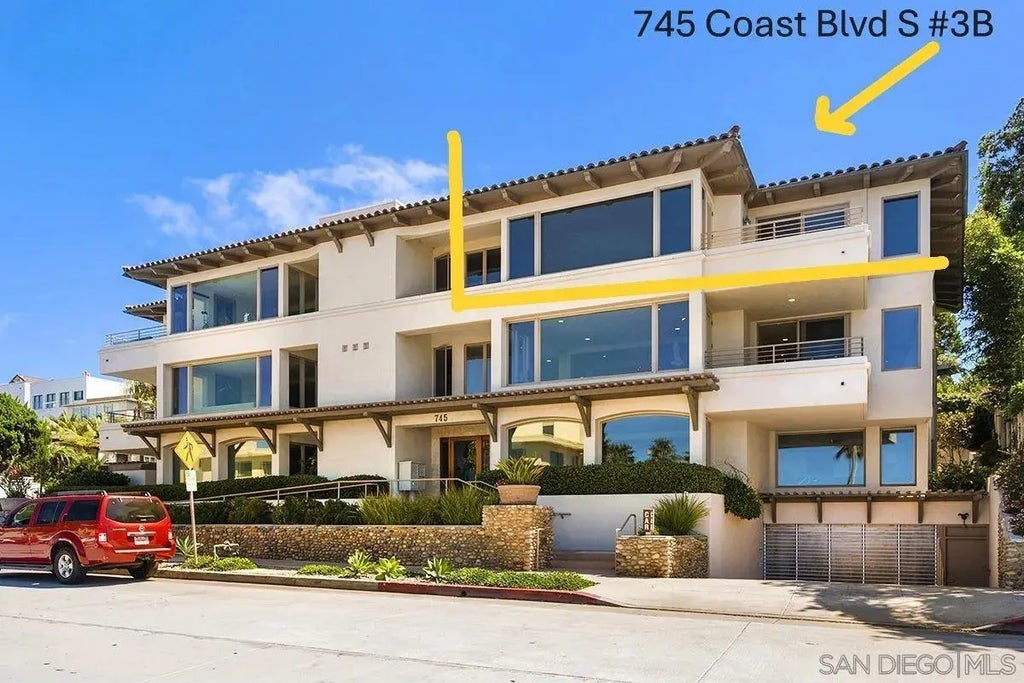 745 Coast Boulevard South #3B: this is the first time offered for sale since built new in 1999. Super desirable top floor unit in the boutique coastline adjacent '745 Coast' building consisting of only 6 units. Enjoy awe inspiring unobstructed ocean and sunset views with its premier southwest orientation. Two large bedrooms, 2.5 baths, fireplace, laundry room, 2 balconies/patios, and no shared walls. Nothing like it in the Village of La Jolla. A fabulous opportunity for the fortunate few. Two side by side parking spots in the underground gated garage with elevator. Not to be missed!