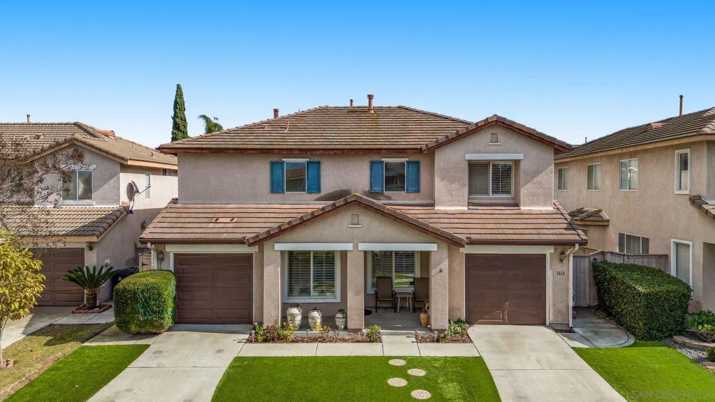 Welcome to this spacious 5-bedroom, 3-bathroom home located in the desirable Otay Ranch community. Built in 2001, this 1,952 sq ft residence features vaulted ceilings, plantation shutters and more. The open-concept kitchen flows into a large family room, perfect for gatherings. The main floor includes a convenient bedroom and full bathroom, while the upstairs houses four additional bedrooms. The master suite boasts a generous walk-in closet and an en-suite bathroom with a large tub and shower. Situated on a 5,244 sq ft lot, the property offers a spacious fenced backyard ideal for outdoor activities. Located near top-rated schools, shopping centers, and parks, this home provides both comfort and convenience. Additionally, the property comes equipped with solar panels.