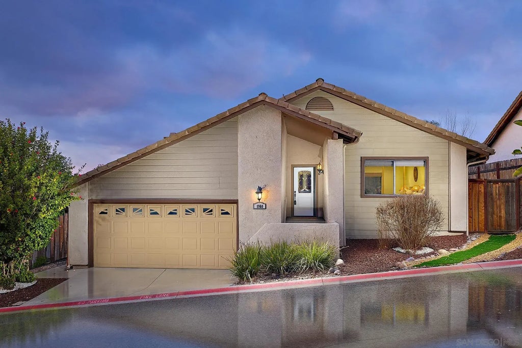 Located in the gated community of Cimarron in North Escondido, this updated 2-bedroom, 2-bath home is move-in ready. Freshly painted interiors, new recessed lighting, a One Water filtration system. Relax by the stacked stone fireplace or in your private BACKYARD OASIS, complete with new sliding door from Primary Bedroom, deck, and an expansive paver patio with firepit, all part of a $30,000 upgrade. In season, Japanese Maple, lemon tree, gardenias, this tranquil retreat offers privacy and stunning sunsets.