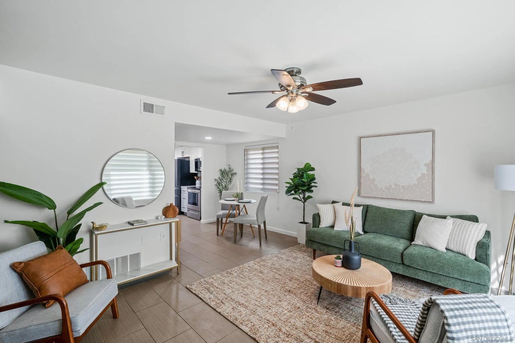 One of the best priced three-bedrooms in San Diego! This beautiful, centrally located townhouse sits on one of the most coveted locations in the complex. An end unit in the back of the community provides privacy and lush green-space. A private patio with access to the carport makes this feel like a single family home. One downstairs bedroom and 2 large upstairs bedrooms are perfect for a family, roommates, office space - you name it. Updates throughout. In-unit laundry and tons of inside and outside storage. Enjoy the community pool and playground year round. Pets allowed and VA APPROVED!! Come on over!