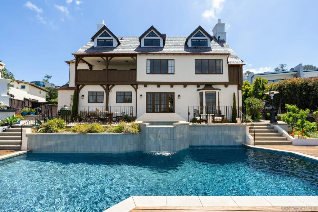 Welcome to 6714 Muirlands Drive, La Jolla. Originally built in 1933, this historic La Jolla home is currently under review for Mills Act Historic designation, potentially offering property tax reductions for future owners. This stunning residence has been fully renovated inside, showcasing an elegant Tudor-style exterior with a blend of traditional and modern interior upgrades. As you enter through the front gate, you're greeted by a charming front patio area adorned with bright wildflowers, brick pathways, and multiple seating areas. Stepping through the front door, you'll find rich, dark wood floors interspersed with grey and white checkered tiles, wood-beamed ceilings, and clean white walls. The living room is a relaxing haven, complete with a gas fireplace, cozy lounging areas, and picture windows offering views of the backyard and blue ocean. The vintage arched entryways lead you to the dining room, where you can enjoy meals with stunning views of the Pacific. The heart of the home is the kitchen, featuring white marble countertops, custom white cabinetry, double sinks, double dishwashers, and a spacious kitchen island with ample seating. The kitchen also includes an adjacent dining area and coffee nook, with black custom cabinetry, under-counter refrigerators and a built-in window bench overlooking the blossoming flowers in the front courtyard. Outside, you'll find a magnificent pool and spa, a wrap-around wood deck with multiple seating areas, an outdoor kitchen/BBQ area, a brand-new wood sauna, a vegetable garden, and ample grassy space ...See Supplement