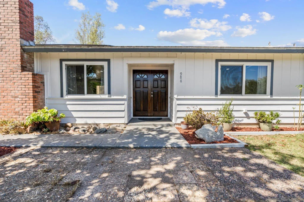 This home features 3 bedrooms and 2 bathrooms, with a bonus family room that can be used as a 4th bedroom or generational living space. Located in Ramona, California, this traditional single-story home offers a blend of comfort, modern amenities, and a serene country lifestyle. Nestled on 2.58 acres with breathtaking mountain views and vibrant sunsets, this property is a perfect sanctuary for those seeking endless possibilities. The large open-concept living area flows into a newly updated kitchen, complete with a smart LG ThinQ electric range, pot filler, and walk-in pantry. The bathrooms have also been newly updated with modern vanities. Energy efficiency is a highlight, with an owned 14kW solar system and a solar water heater, complemented by LED lighting. The property includes 110v and 220v charging ports in the parking area, along with ample RV parking. The primary bedroom opens to a patio with slate tile, perfect for enjoying the outdoor views. Outside, the fenced yard is adorned with fruit trees, grape vines, and garden boxes, alongside a chicken coop for those interested in a homestead lifestyle. There is room for all your toys and animals, with a detached shed providing ample storage space for tools and equipment. With no HOA restrictions, this home allows you the freedom to truly make it your own. Embrace the country lifestyle with modern comforts in this charming home, where you can entertain, relax, and enjoy the beauty of nature.