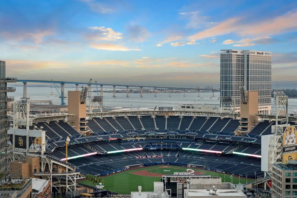 Enjoy Breathtaking Views from this 21st Floor Southeast Corner Home in The Mark. Welcome to your dream home! This stunning 21st floor southeast corner residence in The Mark offers panoramic views of the mountains, bay, PetCo Park, Pt. Loma, and the gleaming skyline.Features Include:Spectacular Views: Enjoy the breathtaking scenery from every room, thanks to the floor-to-ceiling windows and 10-foot ceilings. Refurbished Elegance: Recently refreshed with a clean, fresh look, this home features paint throughout, floors, & updated kitchen & bathrooms. Spacious Balcony: Perfectly situated to take in all the views, the balcony provides a serene outdoor space. Prime Location: Located in The Mark, one of the most sought-after buildings, you'll have access to premium amenities and be in close proximity to all the best that the city has to offer. Don't miss the opportunity to make this spectacular home yours. Schedule a viewing today and experience the luxury and views for yourself!