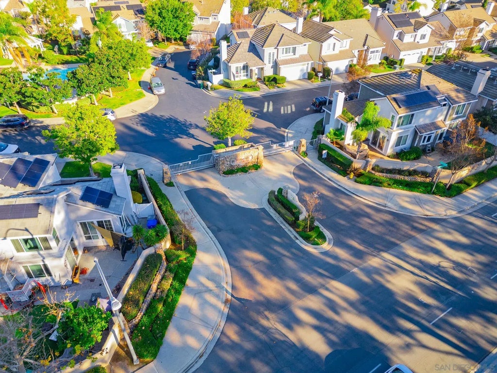 Welcome to this stunning home nestled in the highly sought-after gated community of Heritage Hills, situated in the charming Carmel Mountain Ranch neighborhood. This immaculately cared-for residence boasts an attached two-car garage and an open-concept kitchen, complete with modern appliances, a butcher block island, and picturesque views through the sliding glass door off the private backyard. The bright and airy living and dining areas flow effortlessly together and cozy up by the fireplace in the family room, perfect for chilly winter nights. Upstairs, the primary suite impresses with vaulted ceilings, a fireplace, an ensuite bathroom featuring a walk-in closet, nice size bathroom. The meticulously landscaped backyard offers low-maintenance turf, concrete and tile pad for your BBQ along with lots of greenery. Washer, Dryer & refrigerator included. Additional highlights include the award winning Poway School District, close to shopping, library, restaurants, Costco and much more. Community features pool, spa, BBQ and playground areas.