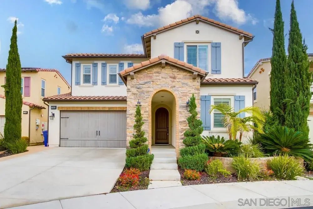 Gorgeous two story home conveniently located in prestigious La Costa with top rated schools. This bright and open layout features recessed lighting, hard floors and a cozy fireplace. Kitchen boasts matching stainless appliances with double oven and gas stove, plus walk in pantry. Carpeted bedrooms with plantation shutters, the primary bath hosts dual vanities and a soaking tub. Laundry room includes W/D and sink. Fully fenced backyard with covered patio & attached two car garage. Landscape maintenance included!