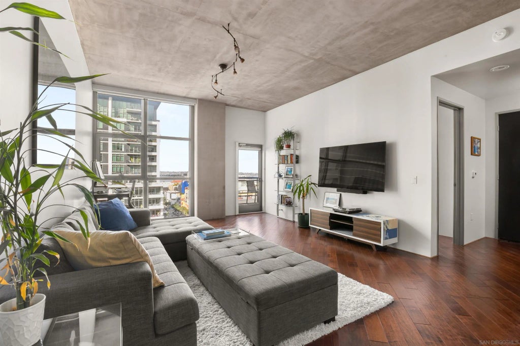 Nestled in vibrant Little Italy, this modern 9th-floor residence offers a perfect blend of urban style and captivating bay views from the living area, private balcony, and primary bedroom. The sleek and spacious design features a recently upgraded kitchen + bathroom, 10-foot exposed concrete ceilings, open-concept living areas, a floor-to-ceiling window that floods the space with natural light, and more! Enjoy the expansive views from the balcony overlooking the neighborhood and Bay, seamlessly extending your living space. With top restaurants, shopping, and one of the city’s premier farmer’s markets just seconds away, this is a chic and convenient spot in one of the West Coast's most bustling downtown areas. 1 parking space included. Property may be rented furnished for an additional fee.