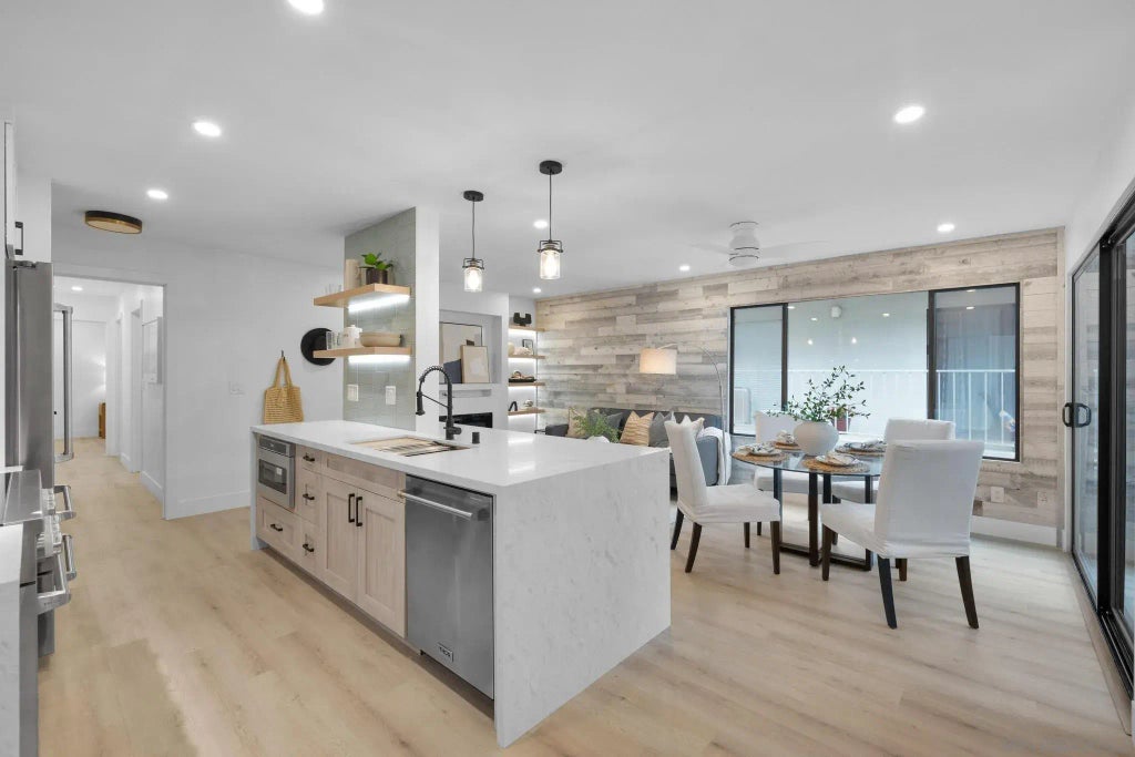 Rarely available Pacific Beach condo located just steps to the sand in the most desirable area of Sail Bay. Situated in a very peaceful complex with a friendly community; this 2 bedroom 2 bath property has been expertly remodeled from top to bottom with no expense spared. The modern coastal design includes premium kitchen cabinets, quartz countertops, high-end stainless-steel appliances, electric fireplace and a bar area featuring a built-in wine cooler and matching beverage center. Floor to ceiling windows let in a ton of natural light; and also have brand new custom motorized shades for privacy. Each bathroom has a spa like design with an oversized rain shower and Toto toilet. Plumbing and electrical have all been upgraded. Amenities include 2 designated underground parking spots, garage storage cabinet, elevator, community laundry, pool and BBQ Grills. Enjoy walking on the bay boardwalk at sunrise or sunset and just a short walk to all the great restaurants and shops PB has to offer. Enjoy the beach, surfing, beach volleyball courts, Fanuel Park and the Seaworld fireworks, right outside your door. This stunning unit is perfect for a primary residence, vacation home, or a great long-term investment. This is a turnkey property with an unbeatable location, opportunities like this don't come along often.