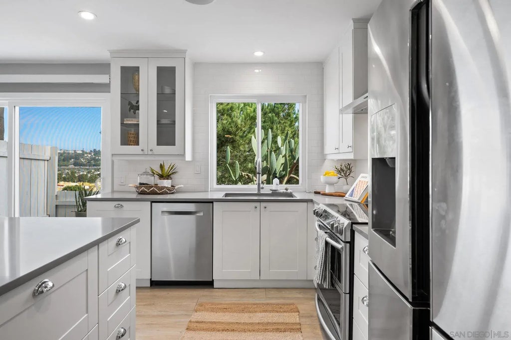 Experience luxury coastal living in this rare 2-bed, 2-bath end-unit townhome with breathtaking valley views. This home features brand-luxury vinyl plank flooring, fresh interior paint, and a light and bright kitchen with stainless steel appliances, white shaker cabinets, quartz countertops, and white subway tile. The primary suite offers a peek-a-boo ocean view from the balcony! Ceiling fans in all bedrooms, and a spa-like bathroom with Carrera tile, white vanity, and white subway tile. HOA recently completed a re-pipe! Enjoy resort-style amenities, including a blufftop clubhouse with oceanfront views, a heated pool, saunas, and lush walking paths with sunset views. With only 29 units, this community is a rare find, just minutes from the beach, Cedros District, Del Mar Racetrack, and top shopping and dining!