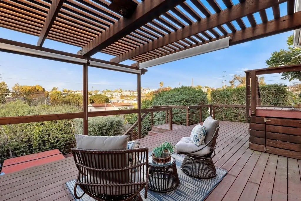 Updated Point Loma Home with Indoor-Outdoor Living. This beautifully updated single-story home in Point Loma offers modern upgrades and seamless indoor-outdoor living. The exterior features a new roof, gutters, and fresh paint, complemented by low-maintenance drought-tolerant landscaping. Inside, the bright living room boasts hardwood floors, recessed lighting, and large windows. The high-end kitchen features premium appliances, sleek cabinetry, and a custom tile backsplash, while the dining nook with a bay window opens to a private deck for effortless outdoor entertaining. The primary suite includes backyard access, plush carpeting, and a spa-like en-suite with heated floors, a walk-in shower, dual vanity, and a vented skylight. Additional bedrooms feature hardwood floors, ceiling fans, and abundant natural light, ideal for guests or a home office. The elevated deck with a pergola provides a perfect outdoor retreat, and the private hot tub area, surrounded by lush greenery, adds to the home’s tranquil feel. Major upgrades include a high-efficiency five-zone heat pump HVAC system, upgraded 200A electrical panel with EV charging, attic insulation, and and all new ABS plumbing throughout. Located outside the direct flight path for San Diego International and a short distance to Dana Middle School and Point Loma High School, this home offers both peace and convenience. With a one-car garage and prime Point Loma location, this move-in-ready home is a must-see!